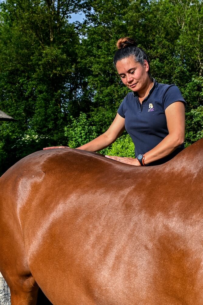 - Analyse van het paard in beweging, zowel aan de hand als aan de longe en eventueel onder het zadel, om compensatiepatronen en asymmetrieën te identificeren.